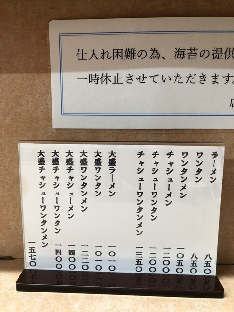 海苔の仕入が困難で一時休止と書かれていました