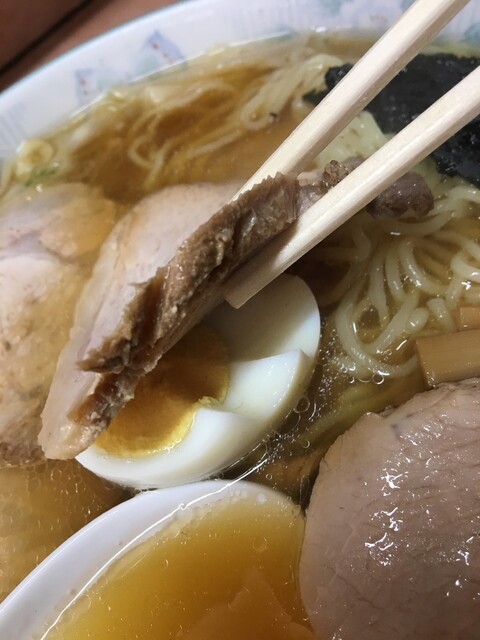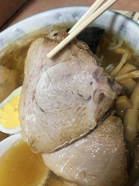 これも「うまい」、次にチャーシュー、歯ごたえがあり自分好みのチャーシュー、これもまた「うまい」、久しぶり食べたワンタンも蓮華に救って