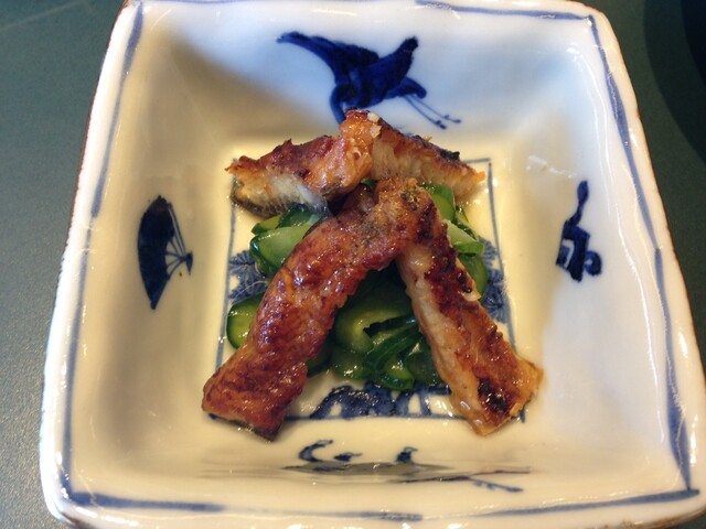 次に出てきたのは、うざく。蒲焼きは小さく切られているのに、やわらかくふっくら、ぷるぷるしている。小骨の処理もとても丁寧だ。味は、ふんわり軽く若干の辛みがある。これが酢の味と相まって絶妙。普段、よほど白焼が美味しいとか、ひつまぶしが特徴だということが無い限り、私の基本的な食べ方は、鰻重と肝焼きにしている。その確認を年間100食程度やっているわけだ。うざくやう巻きも時には食べるし、鰻の燻製、鰻のお茶漬け、もちろん白焼きも食べることは多々ある。廣川さんのうざくは美味しい。肝焼きで鰻の滋味を堪能し、鯉の洗いで口だけでなく胃の中までさっぱりするような気持ちになり、うざくで再び鰻モードに入って行く。とても美味しく、次の鰻重への期待を高めてもくれるのだ。