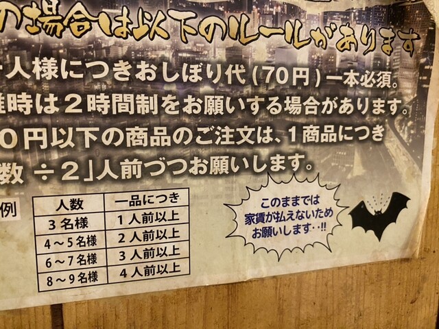 家賃が大変だと書いてあったので、がっつり注文させていただき散々飲み食いして、2980円でした!また来ます。ご馳走様でした!!