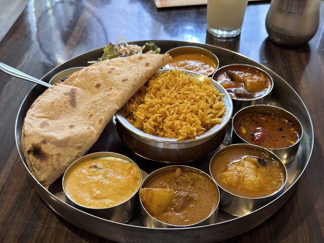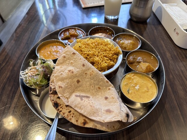 ビリヤニセットもあるけど、カレーもしっかり食べたくなってカレー3種のセットにライスをビリヤニ変更。ちなみにライスもバスマティライスでうまそうだった。