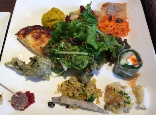 野菜中心の、キッシュ、生春巻き、素揚げ、磯辺揚げ、黄色いツブツブ(なんというんだった?失念)、裏ごしカボチャ、などなど10種類。