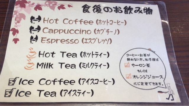 内容はオードブル、メイン、パン、スープ、ドリンク。メインは4種類から選べます。