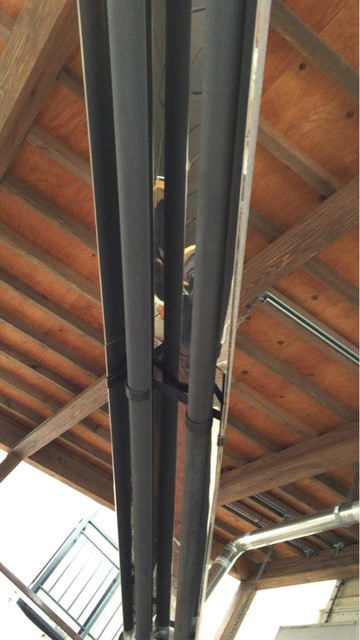 テラスには強力な暖房器具が天井に設置。冬でも寒くない