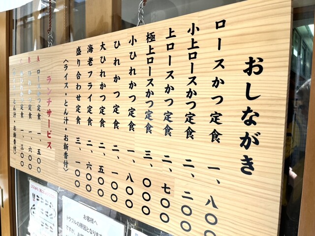 「せっかくなら小上ロースを…」と思ったもののすでに売り切れだった(開店直後だしそもそも本日用意がなかった?)。で、ランチメニューから「ロースかつ 1500円」をチョイス