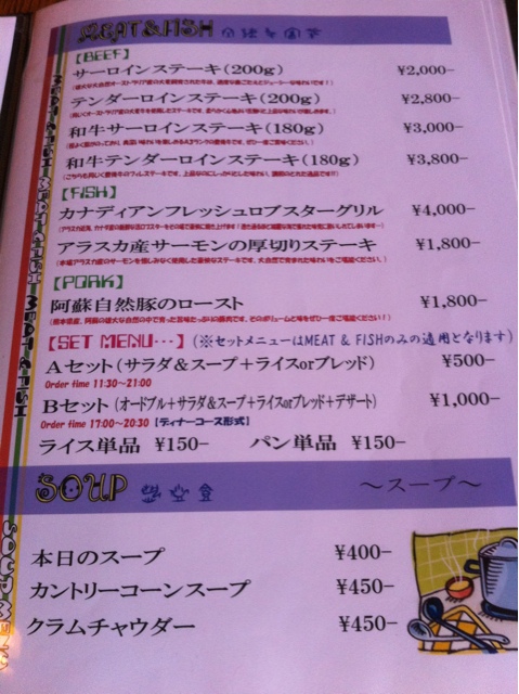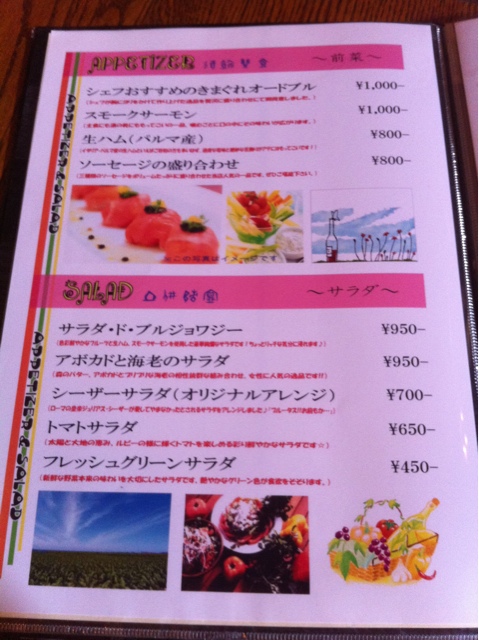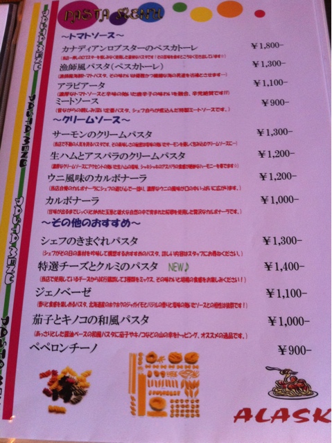 パスタ、ピザ以外に、シルバーサーモン(アラスカ産)、ビーフステーキ(宮崎牛、鹿児島牛、豊後牛)、ロブスター(アラスカ近海産)といったメニューもあり、雰囲気含めカナディアン気分を味わうには十分である(「アラスカ」なので「アメリカン」というべきか?)。