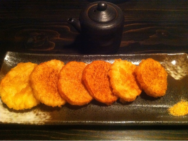 その中に、「萬膳」、「萬膳庵」、「真鶴」と、麹が異なる3銘柄(それぞれ、黒麹、黄麹、白麹)を見つけ、感激。それぞれショットをロックで注文