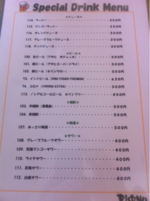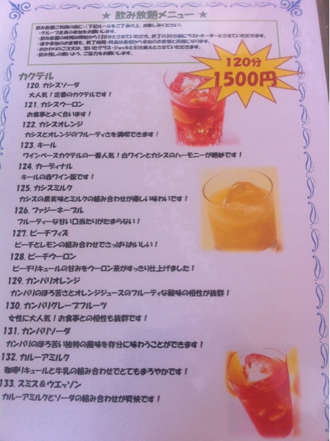 ドリンクメニュー続き