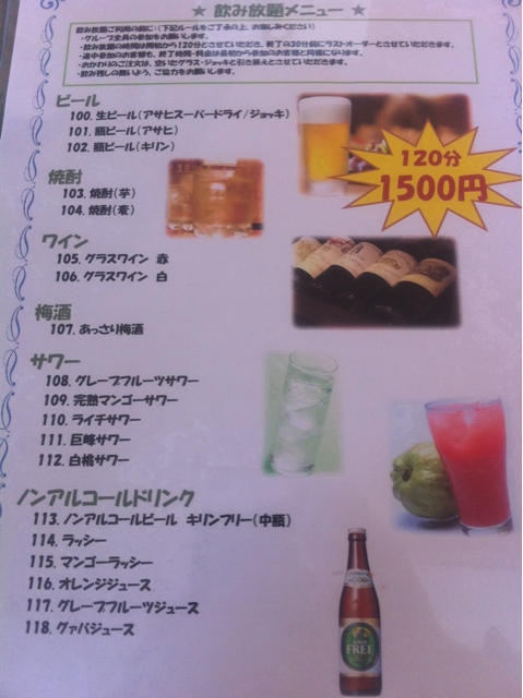 居酒屋の飲み放題でありがちな、オーダー取ってから出てくるまでがやたら遅い、ということも無く、何回頼んでも全て数分で全て出てきた。