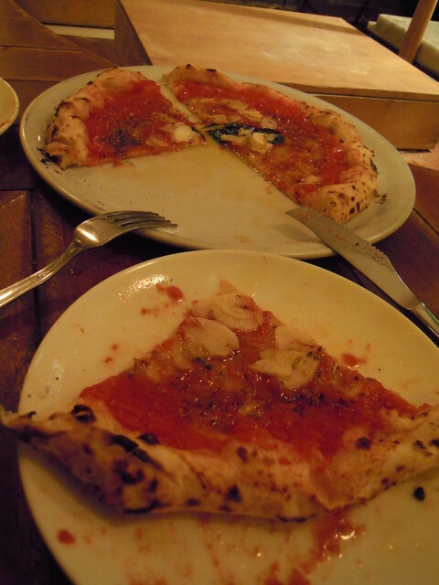 ピッツァは2種類[マルゲリータ]と「[マリナーラ]です。(薄生地ですよ)