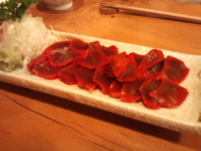 「タントロ刺し」=個人的には焼くよりこっちが好きですね!!!(タンの優しさが伝わります)