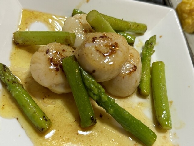 ◉ホタテのバター焼き→極アツホタテにシャキシャキアスパラが旨い!!
