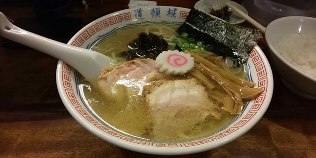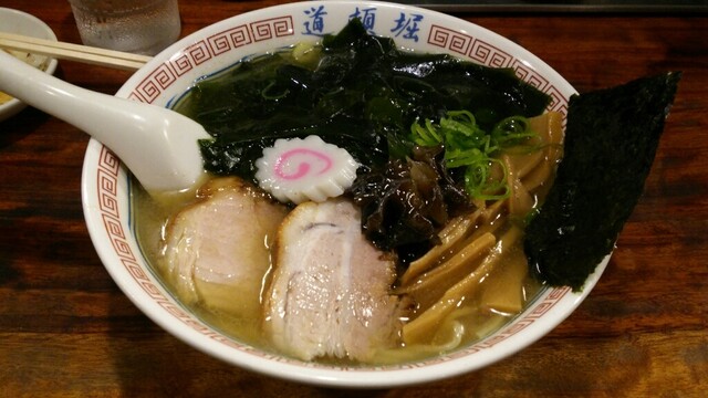 道頓堀さんの中華そば大好きですが、ここ4回程は、塩ラーメンに鳴門ワカメトッピングが定番化してます。今日は仕事の代休を利用して、10時50分から店の前で開店を待ち11時5分に暖簾と共に「いらっしゃい」の声で迎えてくれました。