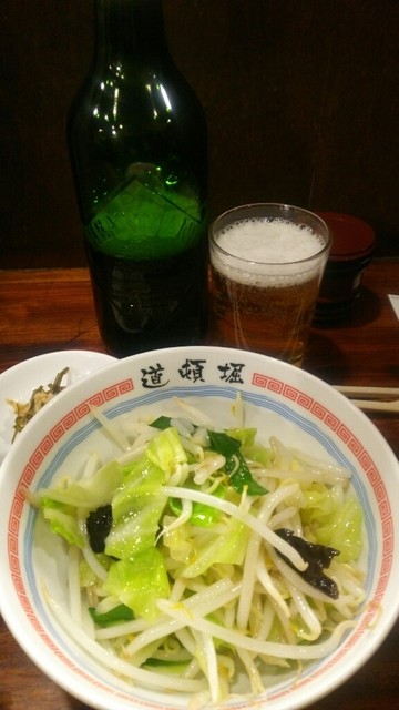 今日も塩ラーメンに鳴門ワカメトッピング、ハートランドビールと温野菜を注文して着席したら、早々にビールと温野菜を出してくれ