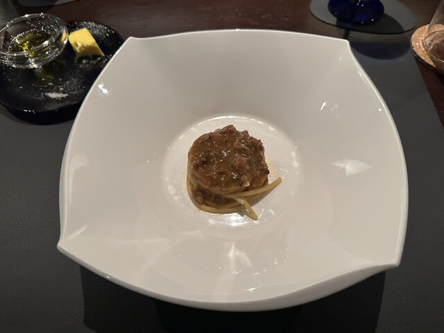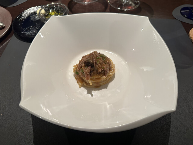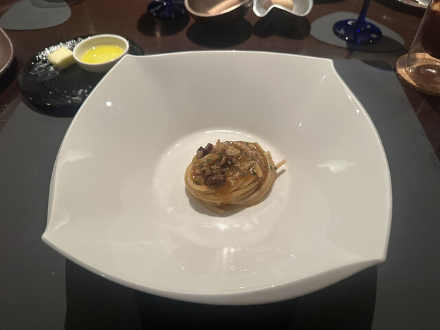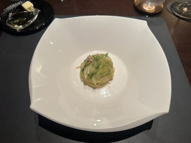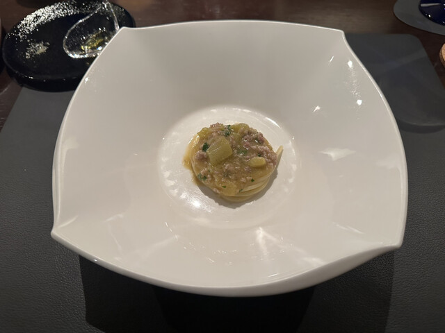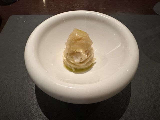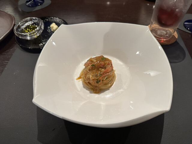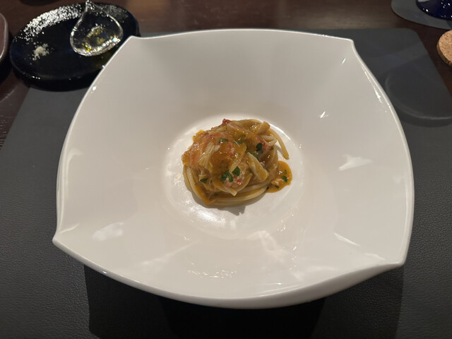 真鱈の白子の冷製パスタは手打ちキタッラ!
