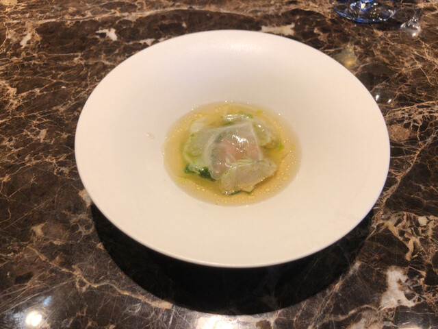 真珠貝のカペレッティ パルマと島原昆布の出汁