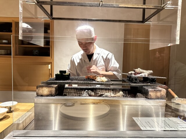 焼き物は金目鯛。かぶもまるごと炭で焼いています。