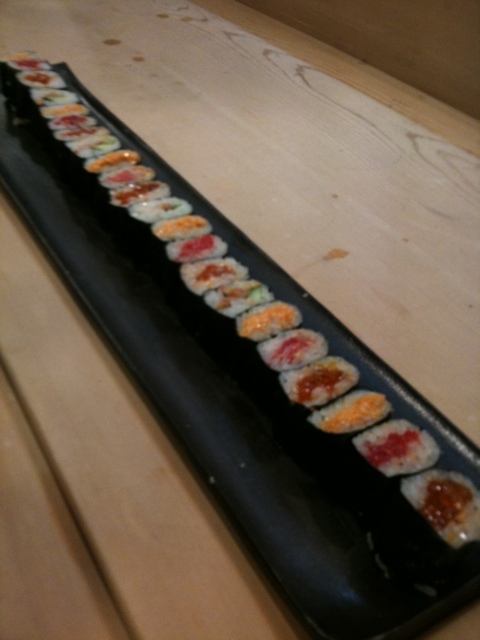 料理の途中で箸休めとして出された細巻3種(マグロのすき身、北海道のウニ、イクラ)が、壮観で食べるのが