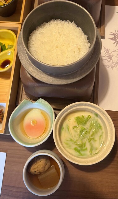 御朝食は、鴨川産ミルキーサマーの窯炊きで提供されます。