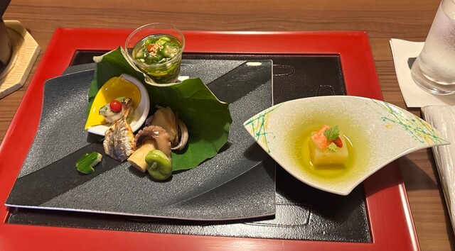 食前酒とともに、先付け・前菜がテーブルに並びます。