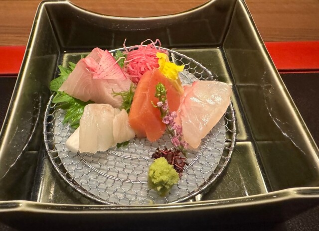 造里は、旬のお造り盛り合わせ、妻色々・山葵を付けていただきます。