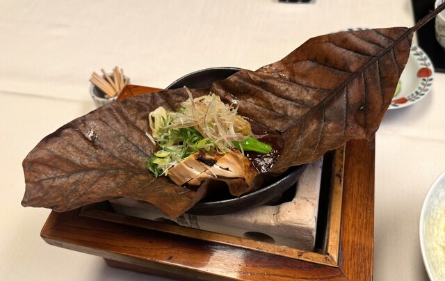 伊達鶏の照り焼きと生麩を朴葉焼きでいただきました。