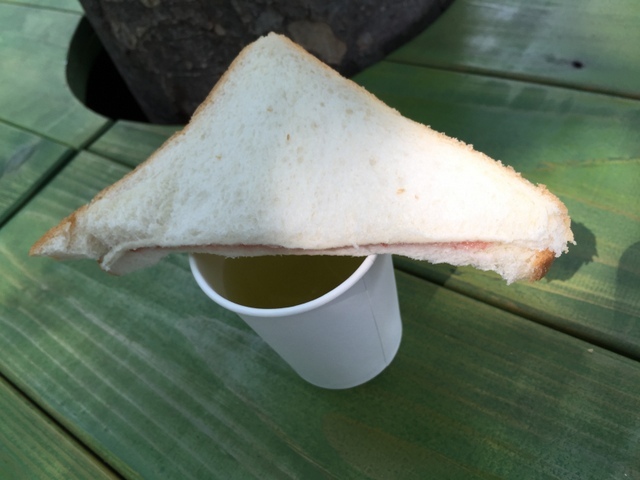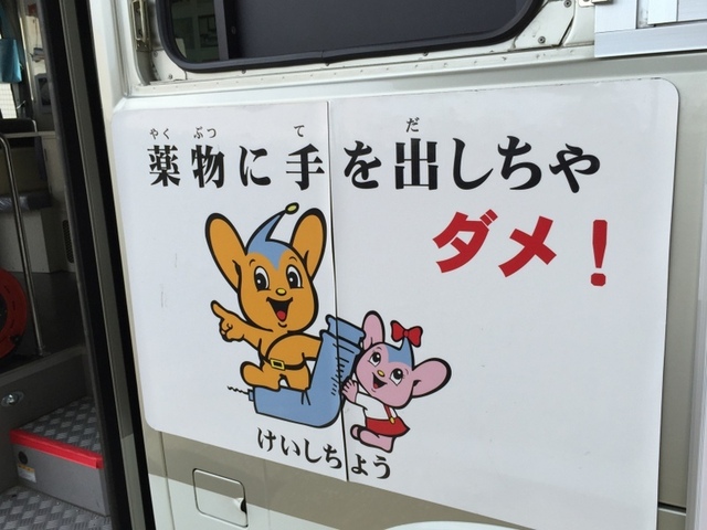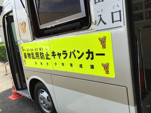 環境市民の集いで警察のキャラバンカーに乗りました (2015/06/07)