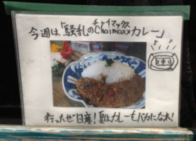 『今週は「騒乱のChaimaxx(チャイマックス)カレー」 行ったぜ日産!夏はカレーもバカになれ!』と入り口に書いてあります。