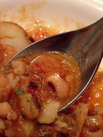 2013年度赤坂で世界一周ベスト10 8位・・・・・・・・・・・・・・・・・・・・・・・・・・・・・・・・・・・・・・・・・・・・・・・・・・未だ我天命を問う時期にあらず2013-02-0615:10:05NEW!テーマ:ランチ2013年2月6日 水曜日 13時 雪ランチ47 ポルトガル料理 ヴィラモウラ 今日は、朝しっかり食べてきたのであまりお腹が空いていない。そして、外は雪から雨に変わっていた。傘をささずに行ける赤坂ビズタワーに行くことにした。お茶漬けが800円、高いパス。世界一辛いスーパー担々麺980円、今日は無理。○○と隠元のクリームスパゲティ980円、ちょっと高い。ベルギービールで煮込んだビーフハヤシライス980円、うーん悩む。結局、みんな1000円近くするので、ポルトガル料理を食べることにしました。注文したのは、豚肉とお豆のフェイジョアーダ 1000円 。大正解でした。ちゃんと無視されずに、注文を取りに来てもらえました。この前の中華屋さんと違って上品なお客さんばかりです。上着なしで、サンダルでも入れてもらえました。カジュアルでいい感じです。サンダルがダメと言われたら、「今日は長靴なんですけど、それでもいいですか?」と聞くつもりでした。 今回の料理は、ポルトガルの肉じゃが風ポークシチューです。ビーフシチューのようにとろとろの豚肉。肉じゃがのようにやさしい味付け。もし、これにスパイスを投入すればりっぱなカレーになったと思います。食べている途中で、テーブルの上に、謎の調味料があることに気づきました。さっそく試してみようと思いましたが、あきらめました。フタの開け方がわからなかったのです。お店の人に聞くにも、何に使うかもわからないのに聞くわけにもいかず、ここは写真を撮るだけで我慢しました。調査の結果、アンドリンニャ オリーブオイルであることが判明。しかし、フタの開け方はわかりませんでした。ついでに店名を調べてみた、HPを見ると、「ヴィラモウラとは、ポルトガル南部地中海に面したリゾート地の名前」とあった。店名は簡単に意味がわかるが、自分の天命はなかなかわからない。いつものように、ちょっとネットで「天命を問う」ってみた。こんな答えが返ってきた。「未だ我天命を問う時期にあらず。」だそうです。http://arienas.blog106.fc2.com/blog-entry-382.htmlちなみにこれは、僕の好きなマンガ「蒼天航路」曹操の言葉です。http://www.justin.tv/bloodytears666/b/287149805