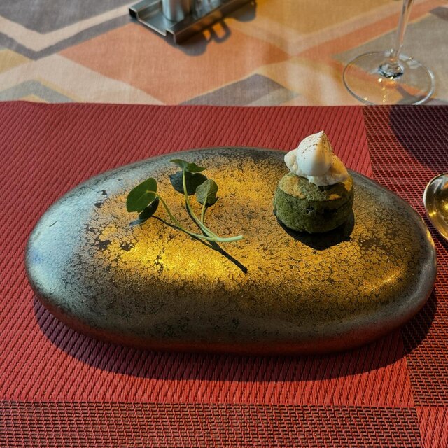 ・海の幸タルタルカリフラワーのムースにパセリのピューレ→夫