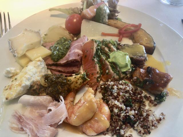 ここのブッフェの特徴は近隣のホテルブッフェと比べると、決して品数は多くないのですが、料理の質が高く、丁寧な調理がなされているという点。料理としての完成度が非常に高いのです。ビーフパストラミ、メイプルグレイズパンプキン、コチュジャングレイズチキン、自家製ベイクドリコッタチーズ、鰹のグリル、サーモンなど。無国籍料理に近いかもしれません。料理としても優れているのですが、嬉しいのは、ほぼ全ての料理に手の込んだソースも添えられていること。3種類のチーズなどチーズも美味。