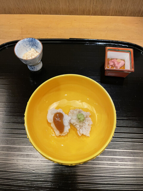 あん肝は口の中で蕩ける濃厚な味わいで、全く臭みも無く、大根卸しと新いくらとの相性も良く美味しかったです。