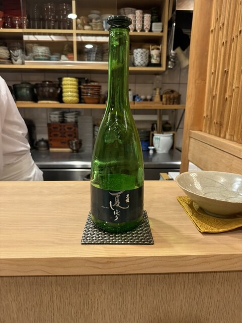 隣の店舗のカラオケが聞こえる中、料理スタート。飲み物はいつもの通り日本酒のおまかせです。
