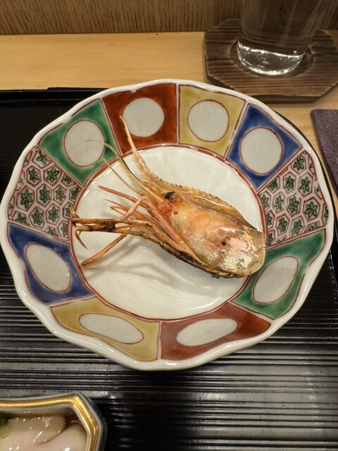 お造りの北海道縞海老の頭を唐揚げで提供。
