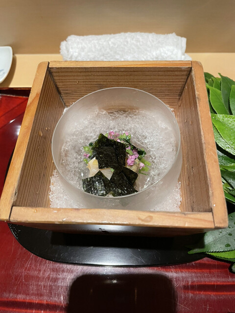 ○昆布の器にいちご煮風(積丹半島の雲丹の餡、酢飯の雲丹和え、車海老)