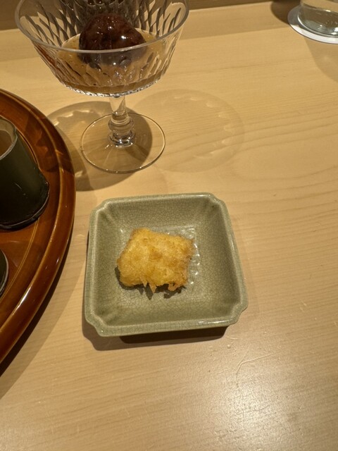 フォアグラと安保柿とウイスキーゼリーの最中は、それぞれのバランスがとても良く、美味しいです。