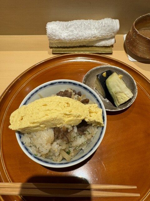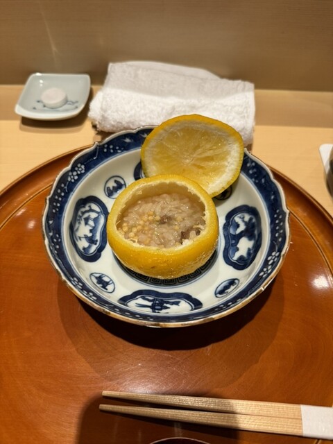その越前蟹の甘く引き締まった肉質に、鮟肝(あん肝)の濃厚な味が絡まった鮨飯が絶品でした。