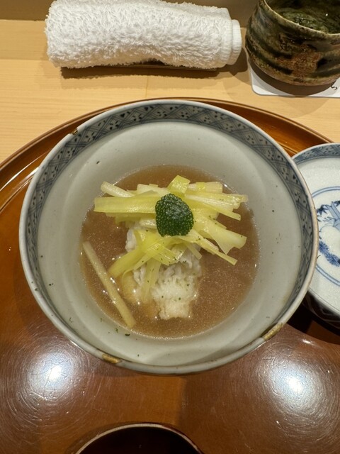 ○椀物(煮麺、蓴菜、雉羽太、生姜)