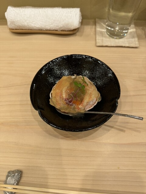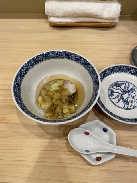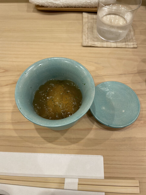 先附は、鯛の出汁の煮凝りに岩手産の雲丹、さっぱりしてジメジメした今の時期にピッタリの一品です。