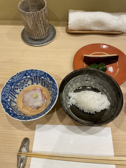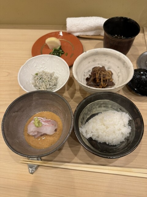 新潟のコシヒカリはお米そのものがとても美味しく、鯛の胡麻和えも、個人的には胡麻和えは他店より一番美味しいと思います。
