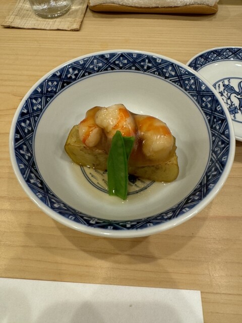 蕪の焚き合わせは、銀杏と車海老と鮑の餡掛け。