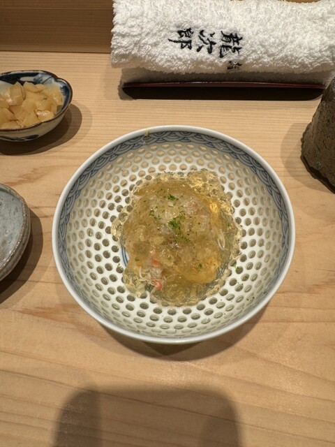 玉子豆腐と毛蟹には出汁から造ったジュレが掛かっており、爽やかな味でした。