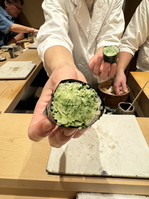 やま幸さんの鮪の中落ち細巻き鮨は、海苔の香りと風味が最高でした。