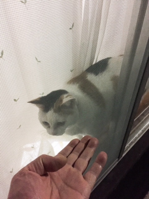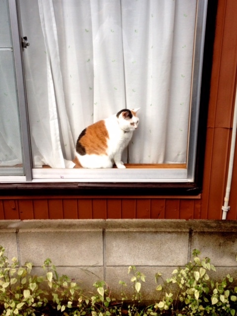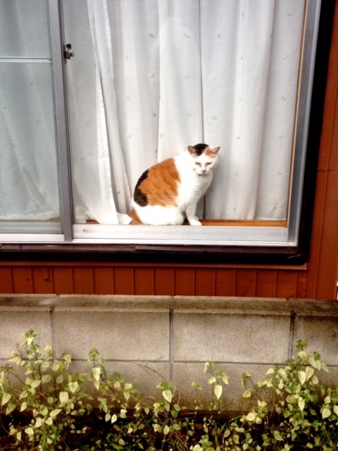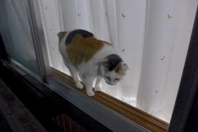 庭にいつも来るノラを呼んだら、家に上がってきたらしい。