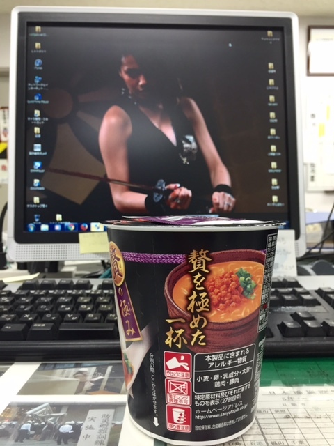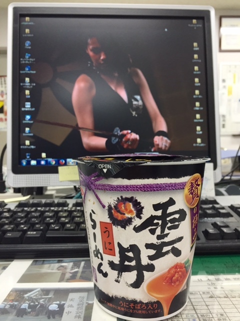 我がデスクトップの前のうにラーメン