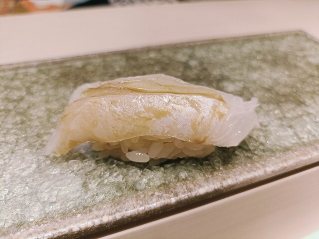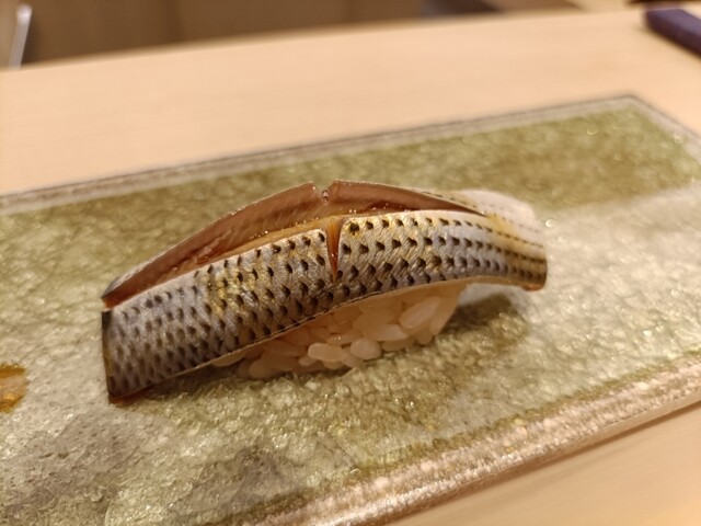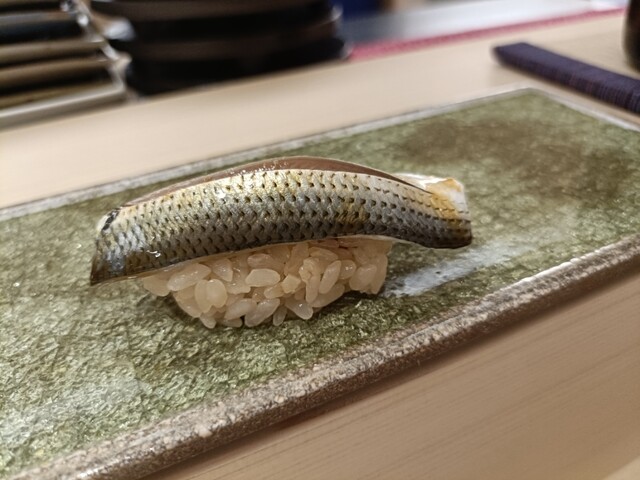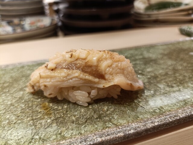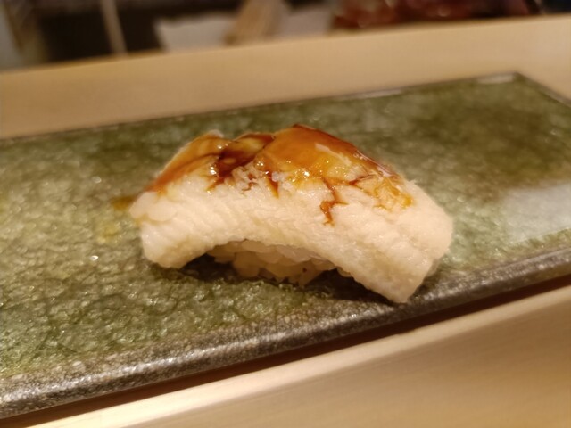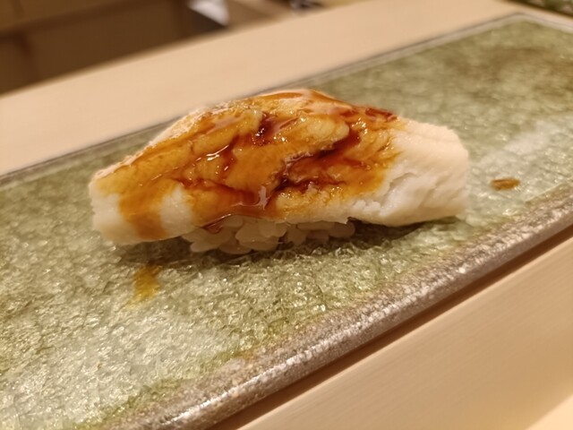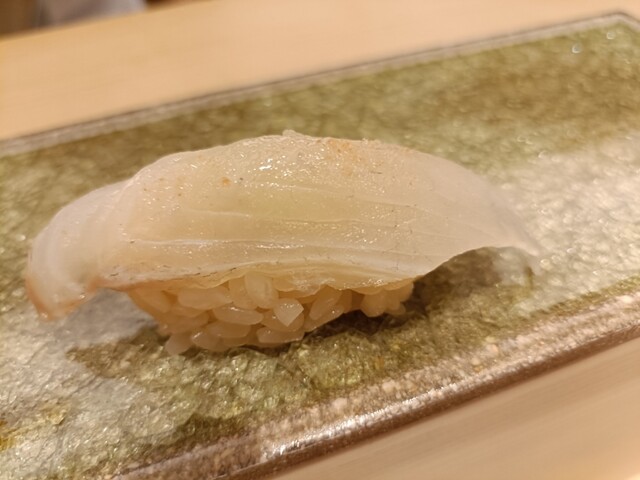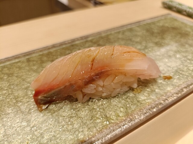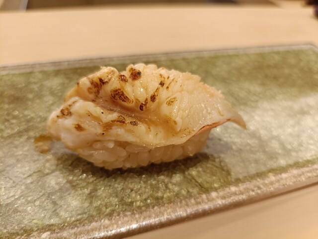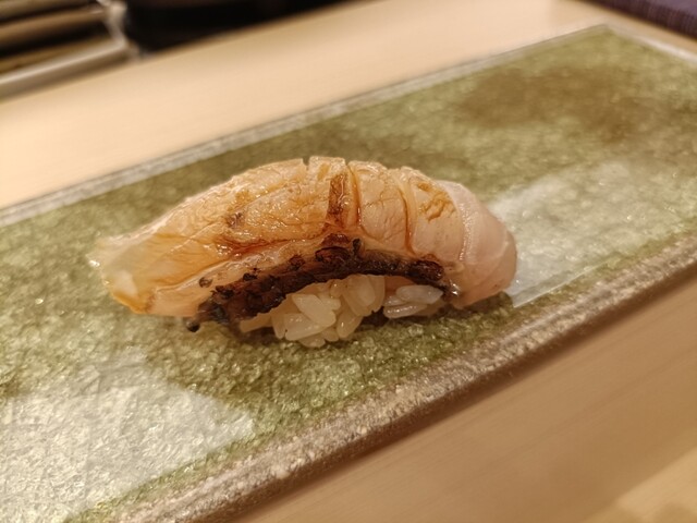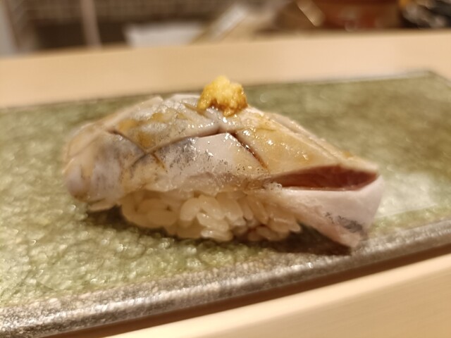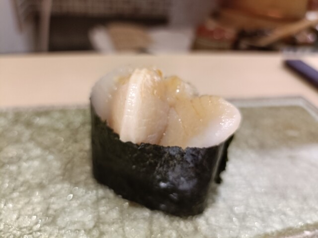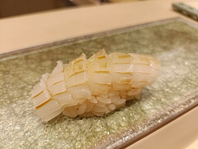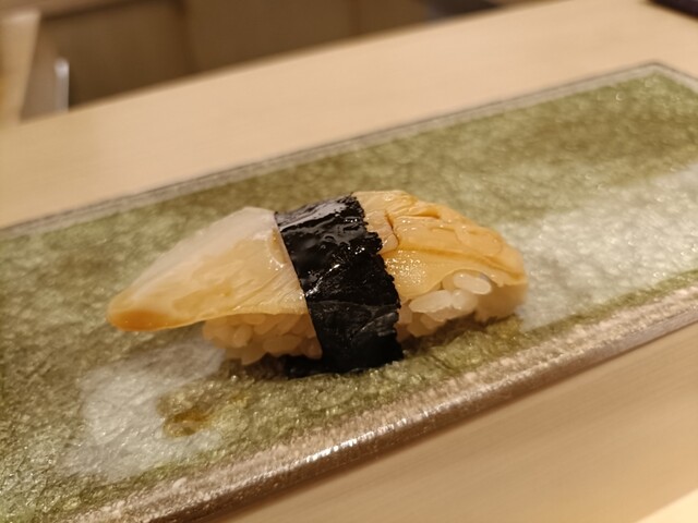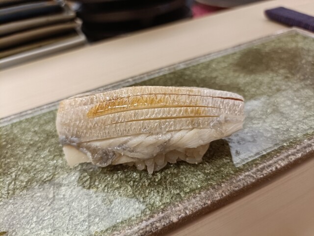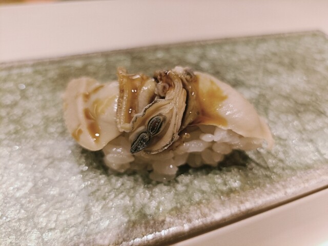 スミイカから始まる握りは、肉厚のアジやサンマ肝醤油、いよいよ出回り始めた日本近海…釧路の本マグロを始めとした定番ネタも良かったが、鯛の稚魚「春日(カスゴ)」の酢締め、旨味が凝縮されたホウボウやマハタなどの白身、蒸し牡蠣が本日の逸品。逆に、新鮮さ抜群のアオヤギ小柱は軍艦巻きで頂いたが、海苔の風味が強すぎて、ネタの鮮烈さを消していたのは残念…はさておき。