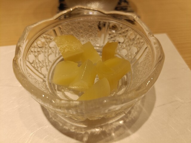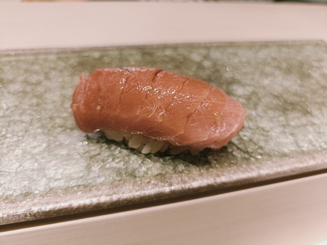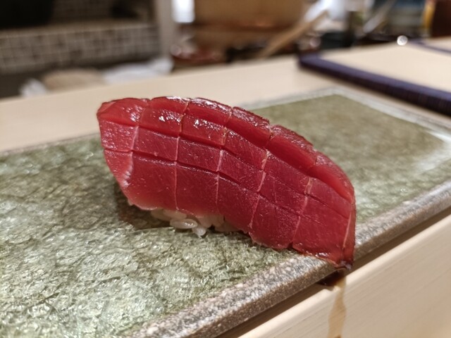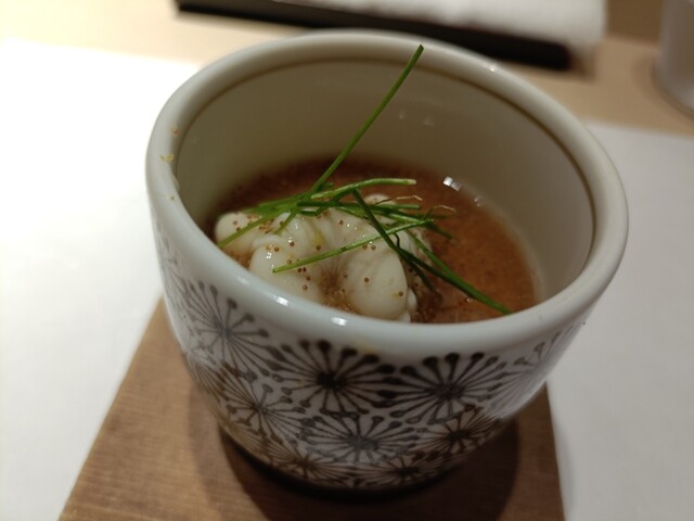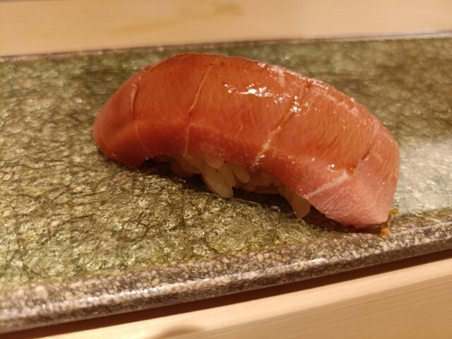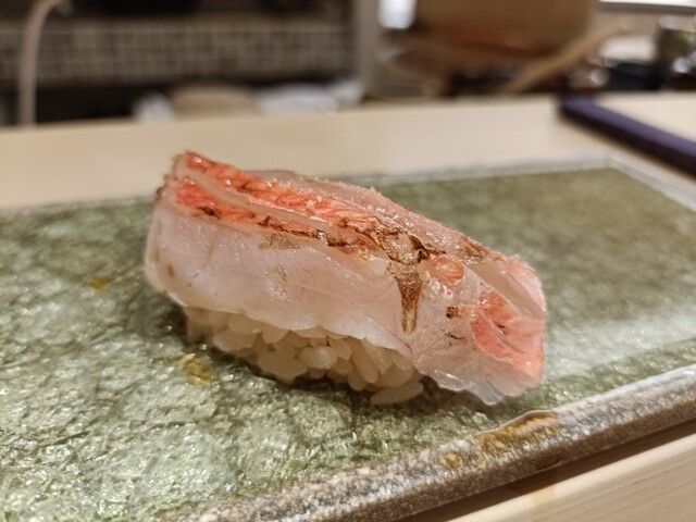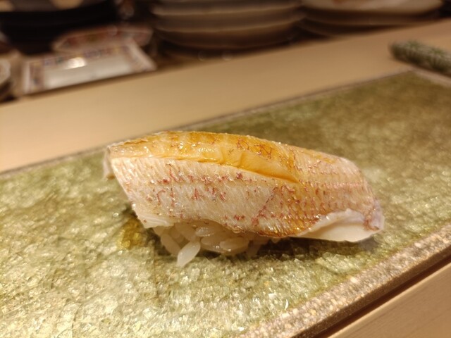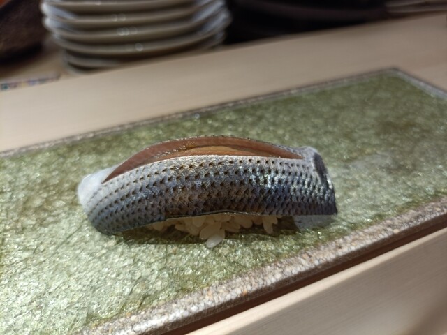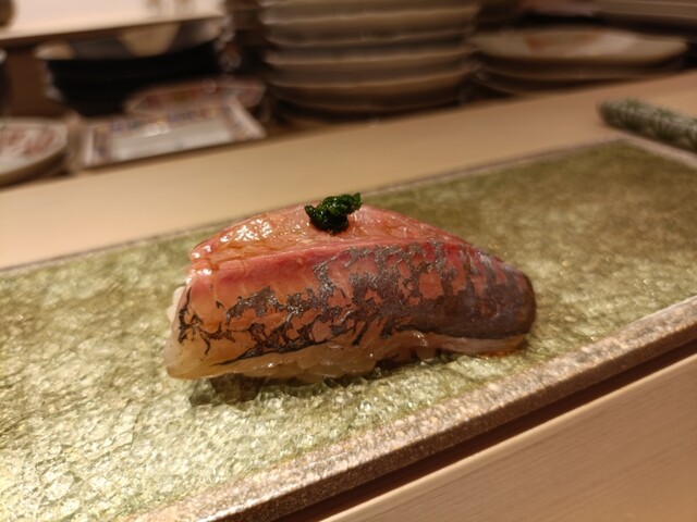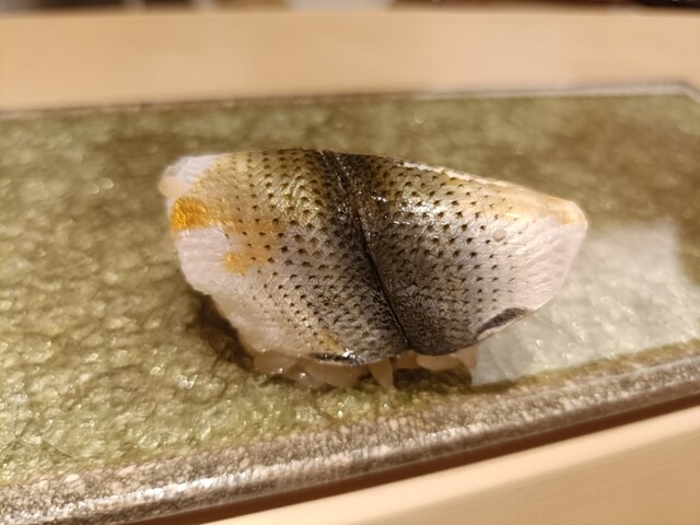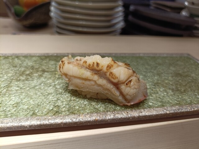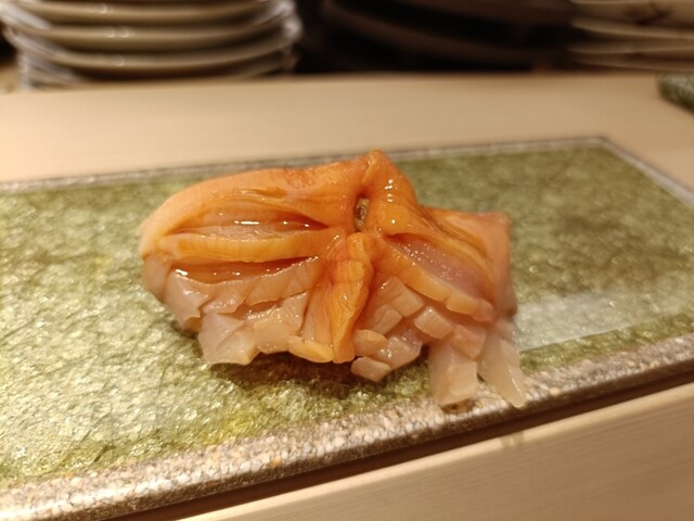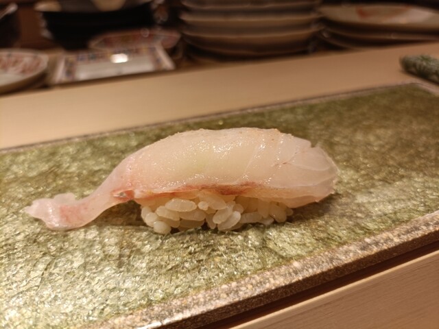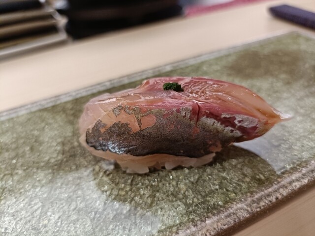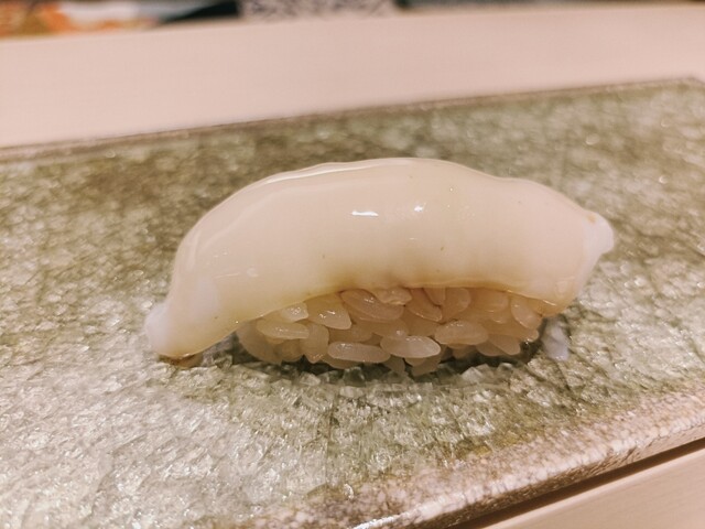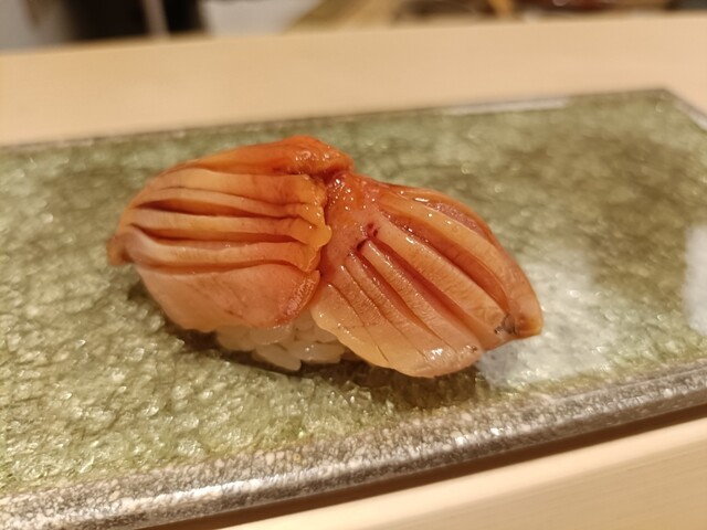 スミイカから始まる握りは、肉厚のアジやサンマ肝醤油、いよいよ出回り始めた日本近海…釧路の本マグロを始めとした定番ネタも良かったが、鯛の稚魚「春日(カスゴ)」の酢締め、旨味が凝縮されたホウボウやマハタなどの白身、蒸し牡蠣が本日の逸品。逆に、新鮮さ抜群のアオヤギ小柱は軍艦巻きで頂いたが、海苔の風味が強すぎて、ネタの鮮烈さを消していたのは残念…はさておき。
