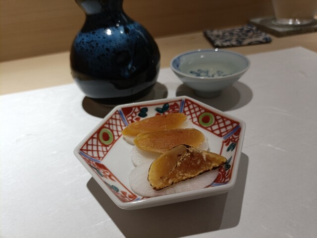 「お酒を飲まれるなら、7,000円のコースが良いと思います。握りは追加できるので」とおっしゃる関さんのアドバイスは確か。別コースで出されたカツオと炙りタチウオのお造りは、めっちゃ美味しそうだったし、追加注文したくなったが、少食の私には…と言うことで、次の「美味しい」出会いを期待しつつ、どうもご馳走様でした!