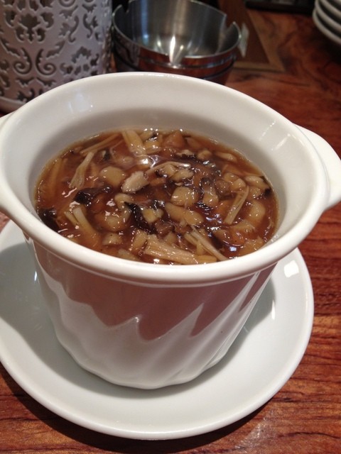 きのこたっぷりのあんの下には、なめらかで深いコクのあるフォアグラの茶碗蒸しが!