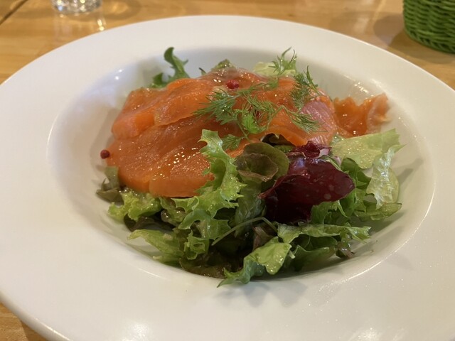 と、言うわけで、サラダは今回はサーモンカルパッチョ。